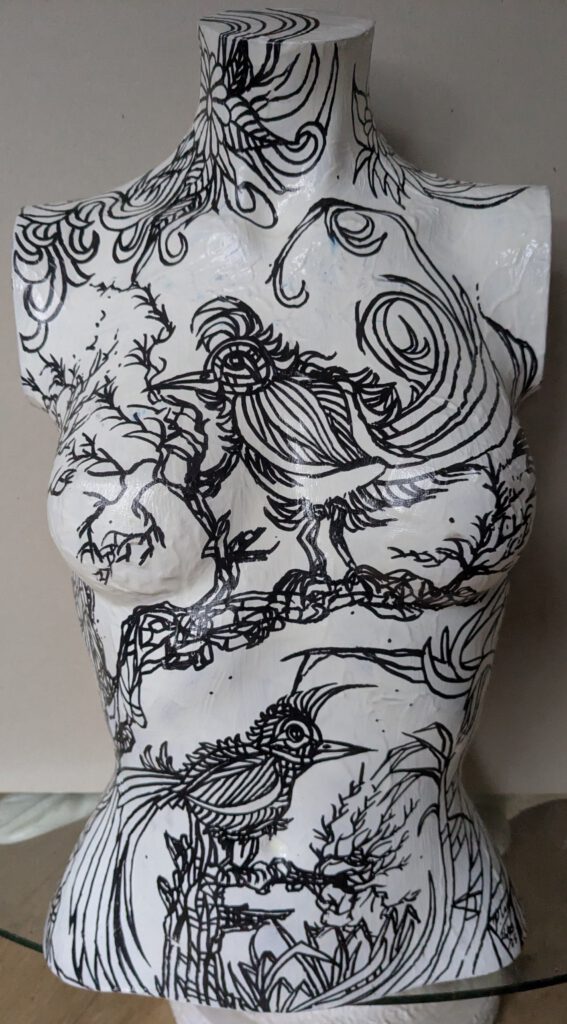 A wonderful life A wonderful life Etalage buste, afmetingen 52 cm hoog en 30 cm breed. Bewerkt met acrylverf en tekenmarkers.