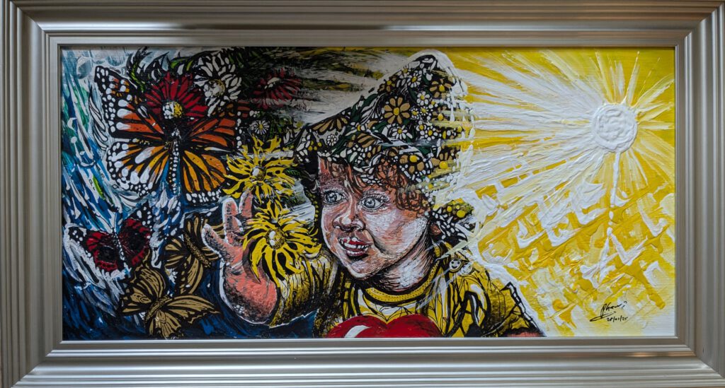Lovely Daydreams >>Naar vorig schilderij Materiaal: acrylverf en tekenmarkersAfmetingen: 139 x 76 cm <<Naar volgend schilderij