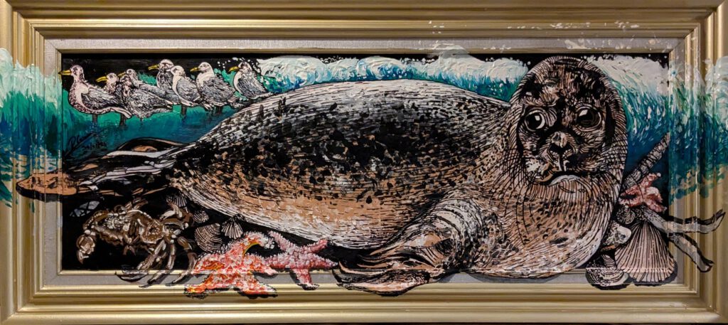 The Seal << Naar vorig schilderij Afm 129 cm bij 58 cm Materialen: Aqrylverf en tekenmarkers >> Naar volgend schilderij